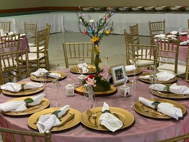 Tenemos servicio de renta de mantelería y algunos accesorios, diseñamos tu decoración principal hasta el último detalle, realizamos todo tipo de centros de mesa y manualidades que te puedan gustar.